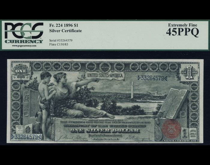 One 1896 $1 Educational Silver Certificate PCGS 45PPQ.