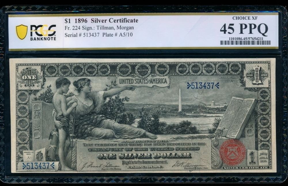 One 1896 $1 Educational Silver Certificate PCGS 45PPQ.