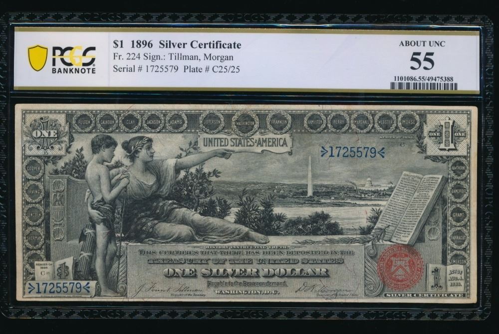 One 1896 $1 Educational Silver Certificate PCGS 55.