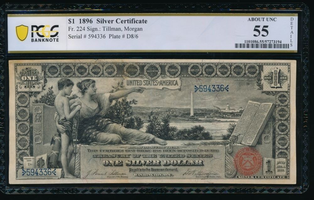 One 1896 $1 Educational Silver Certificate PCGS 55.