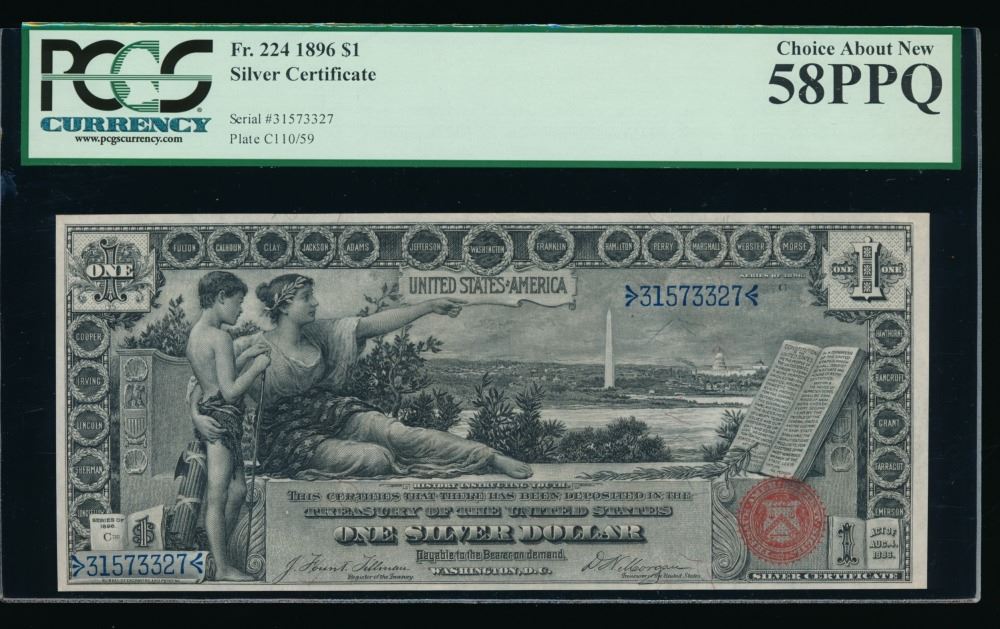 One 1896 $1 Educational Silver Certificate PCGS 58PPQ.