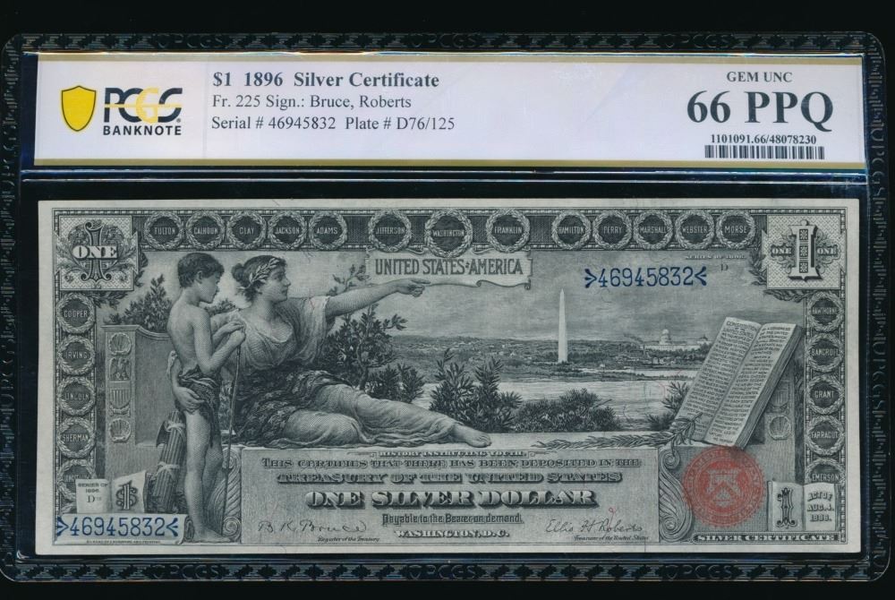 One 1896 $1 Educational Silver Certificate PCGS 66PPQ.