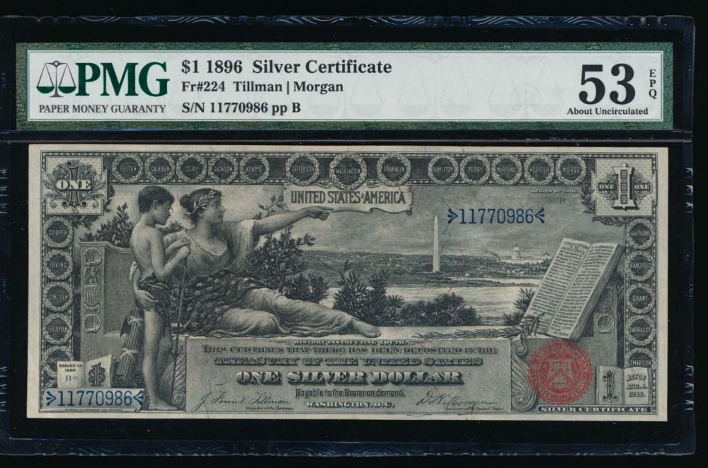 One 1896 $1 Educational Silver Certificate PGM 53EPQ.