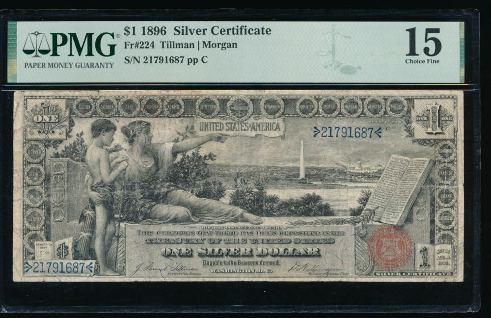 One 1896 $1 Educational Silver Certificate PMG 15.