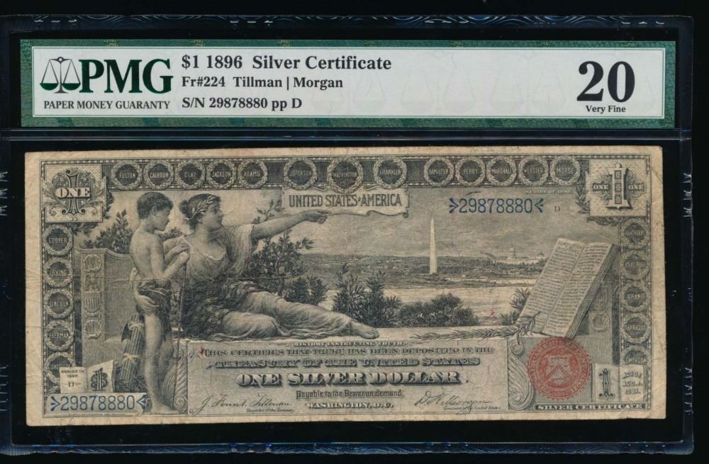 One 1896 $1 Educational Silver Certificate PMG 20.
