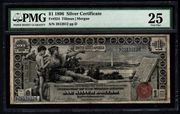 One 1896 $1 Educational Silver Certificate PMG 25.