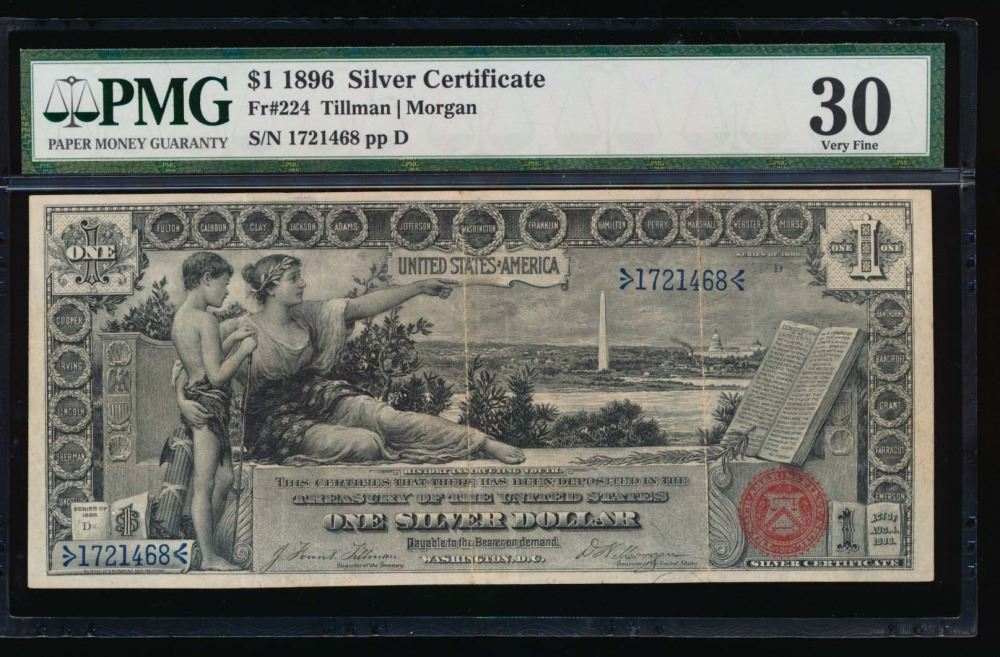 One 1896 $1 Educational Silver Certificate PMG 30.