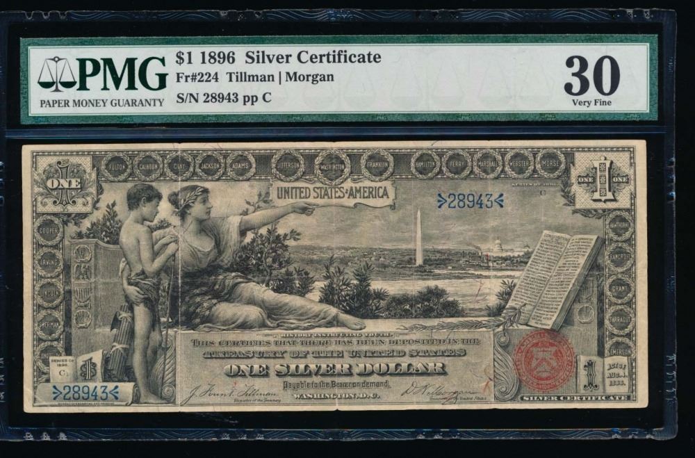 One 1896 $1 Educational Silver Certificate PMG 30.