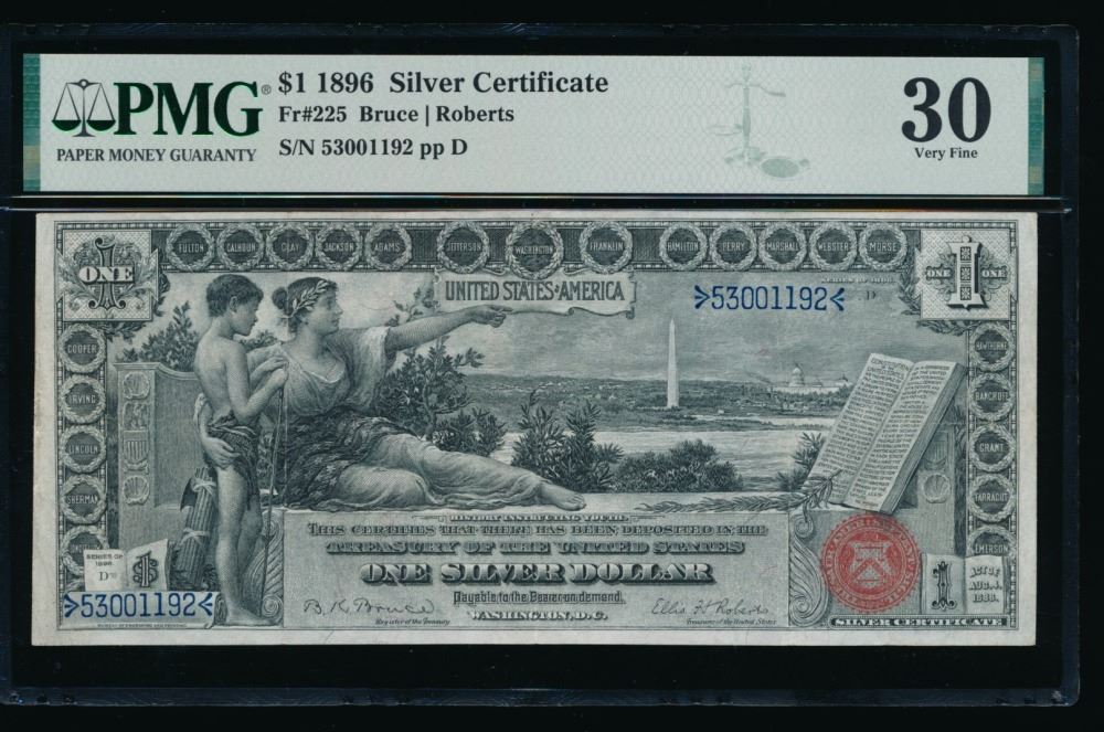 One 1896 $1 Educational Silver Certificate PMG 30.