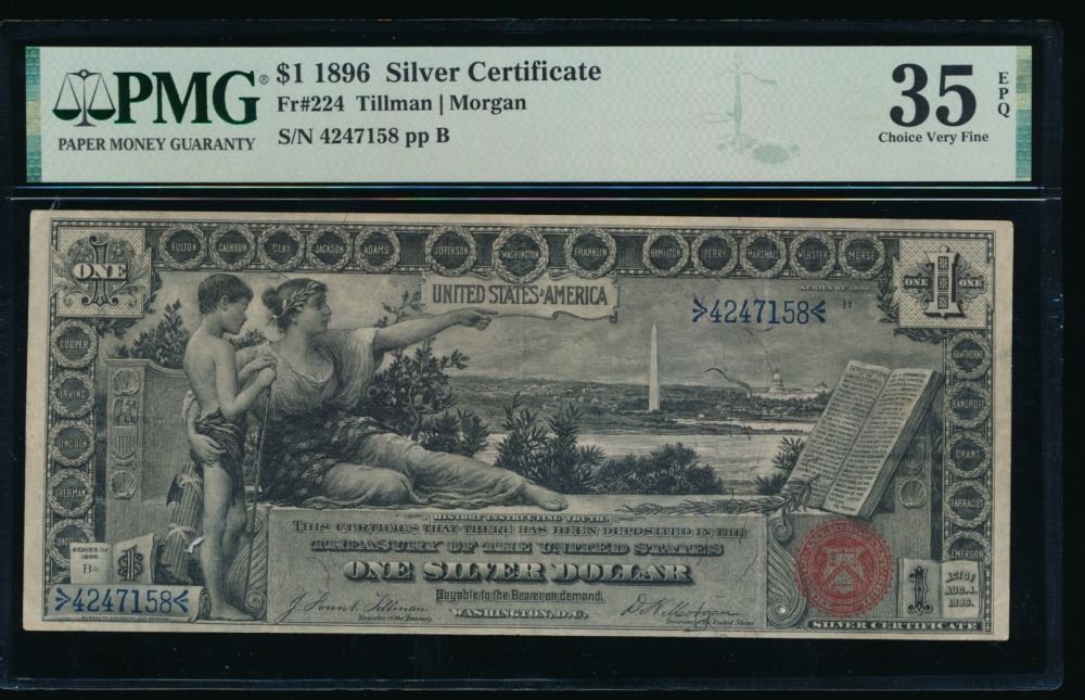 One 1896 $1 Educational Silver Certificate PMG 35EPQ.