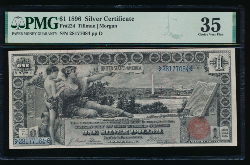 One 1896 $1 Educational Silver Certificate PMG 35.