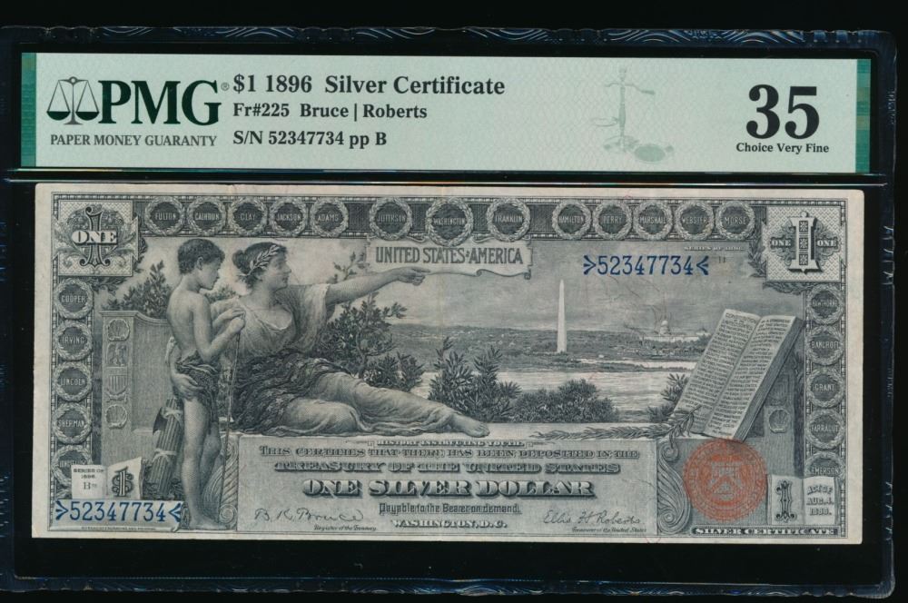 One 1896 $1 Educational Silver Certificate PMG 35.