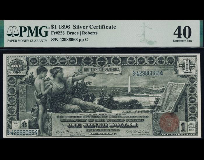 One 1896 $1 Educational Silver Certificate PMG 40.