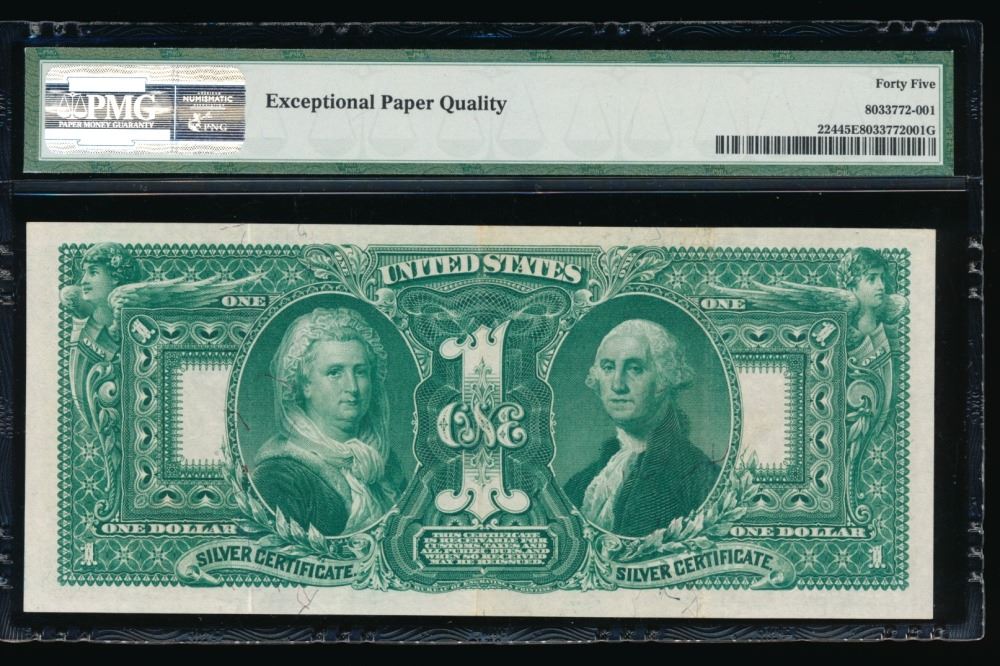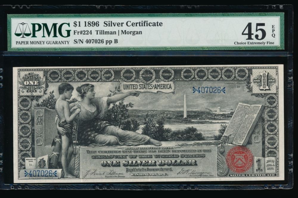 One 1896 $1 Educational Silver Certificate PMG 45EPQ.