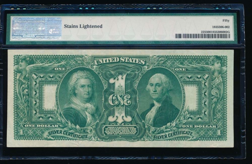 One 1896 $1 Educational Silver Certificate PMG 50.