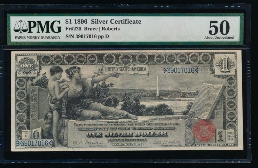 One 1896 $1 Educational Silver Certificate PMG 50.