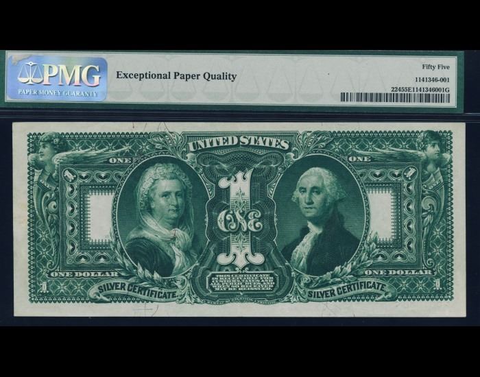 One 1896 $1 Educational Silver Certificate PMG 55EPQ.