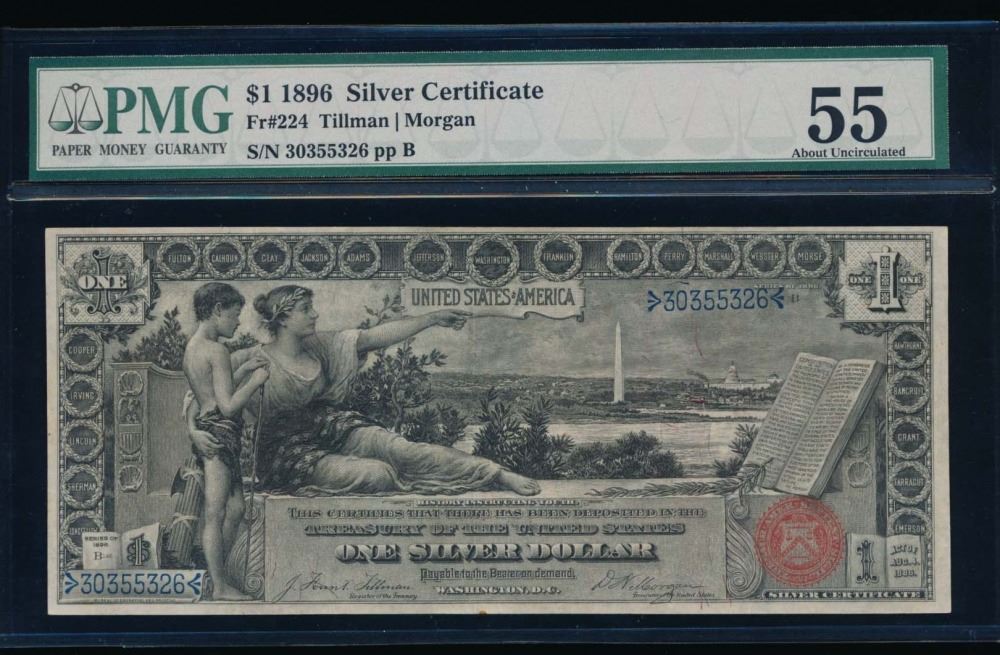 One 1896 $1 Educational Silver Certificate PMG 55.