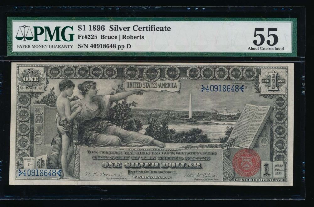 One 1896 $1 Educational Silver Certificate PMG 55.