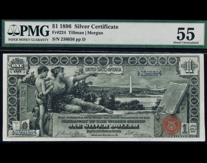 One 1896 $1 Educational Silver Certificate PMG 55.