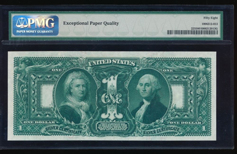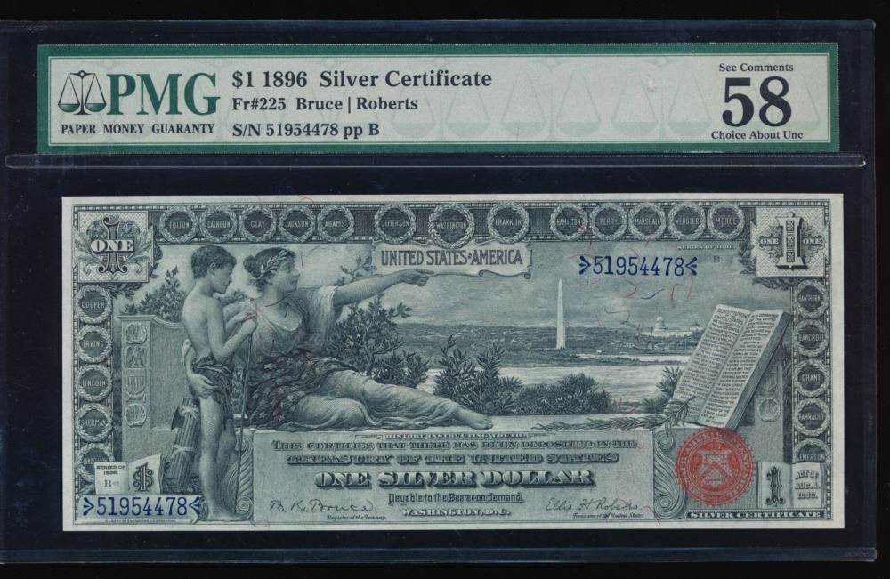 One 1896 $1 Educational Silver Certificate PMG 58.