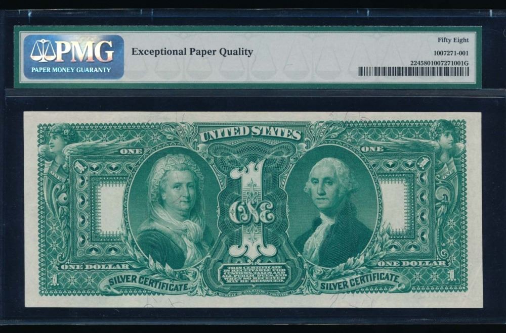 One 1896 $1 Educational Silver Certificate PMG 58.