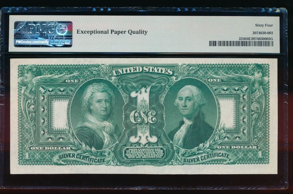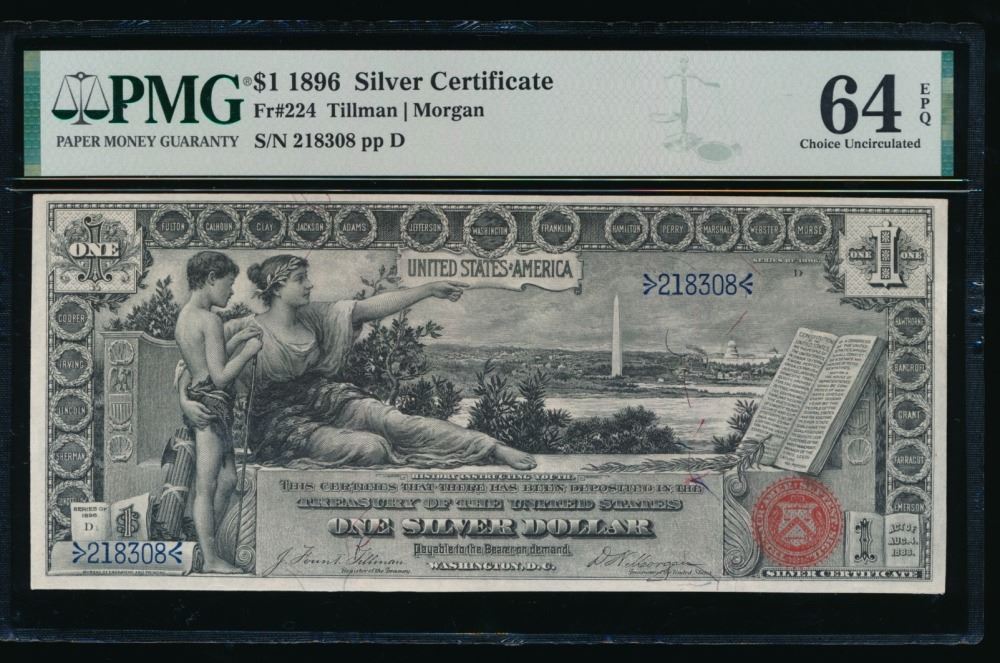One 1896 $1 Educational Silver Certificate PMG 64EPQ.