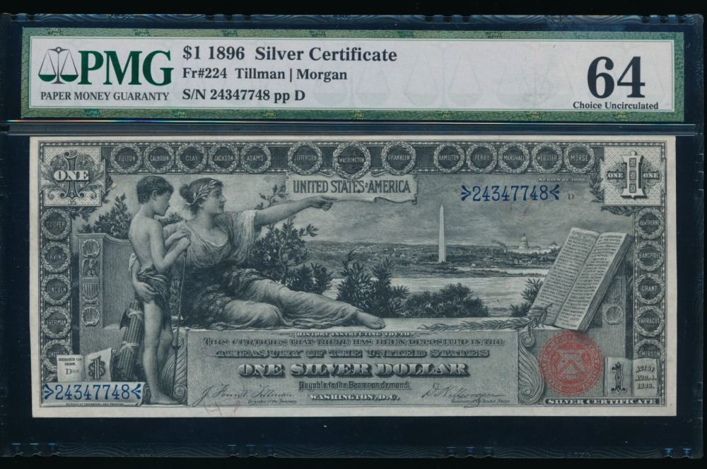 One 1896 $1 Educational Silver Certificate PMG 64.