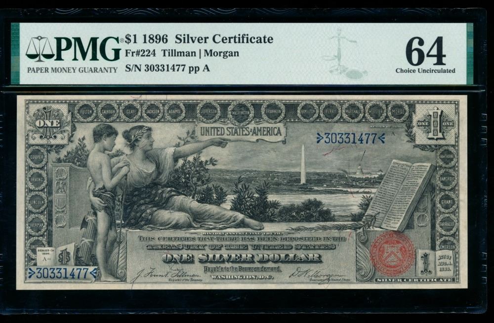 One 1896 $1 Educational Silver Certificate PMG 64.