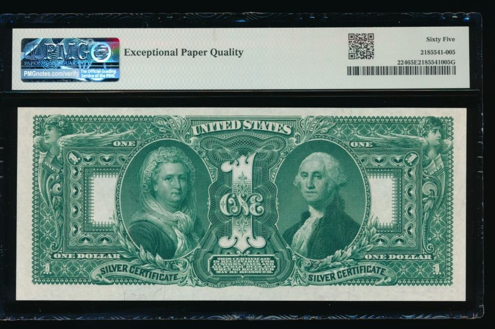 One 1896 $1 Educational Silver Certificate PMG 65EPQ.