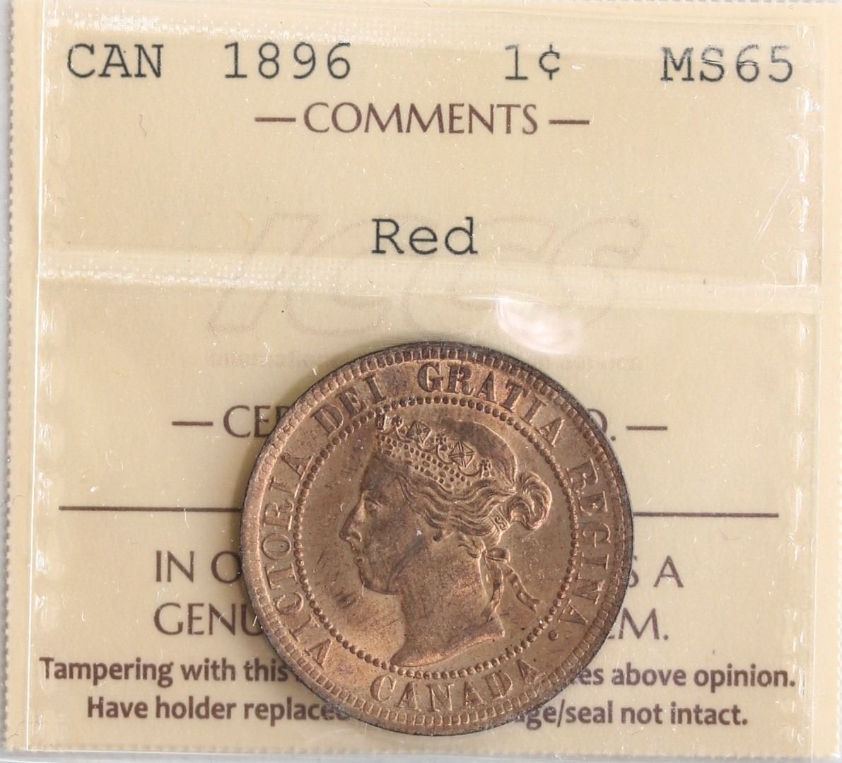 1896 1¢ ICCS Gem Mint State-65 Red. An attractive example with razor sharp details.