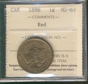 1896 1¢ ICCS MS63RD.