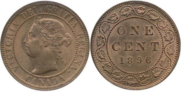 1896 1¢ ICCS MS64RD. 90% red with lustre.