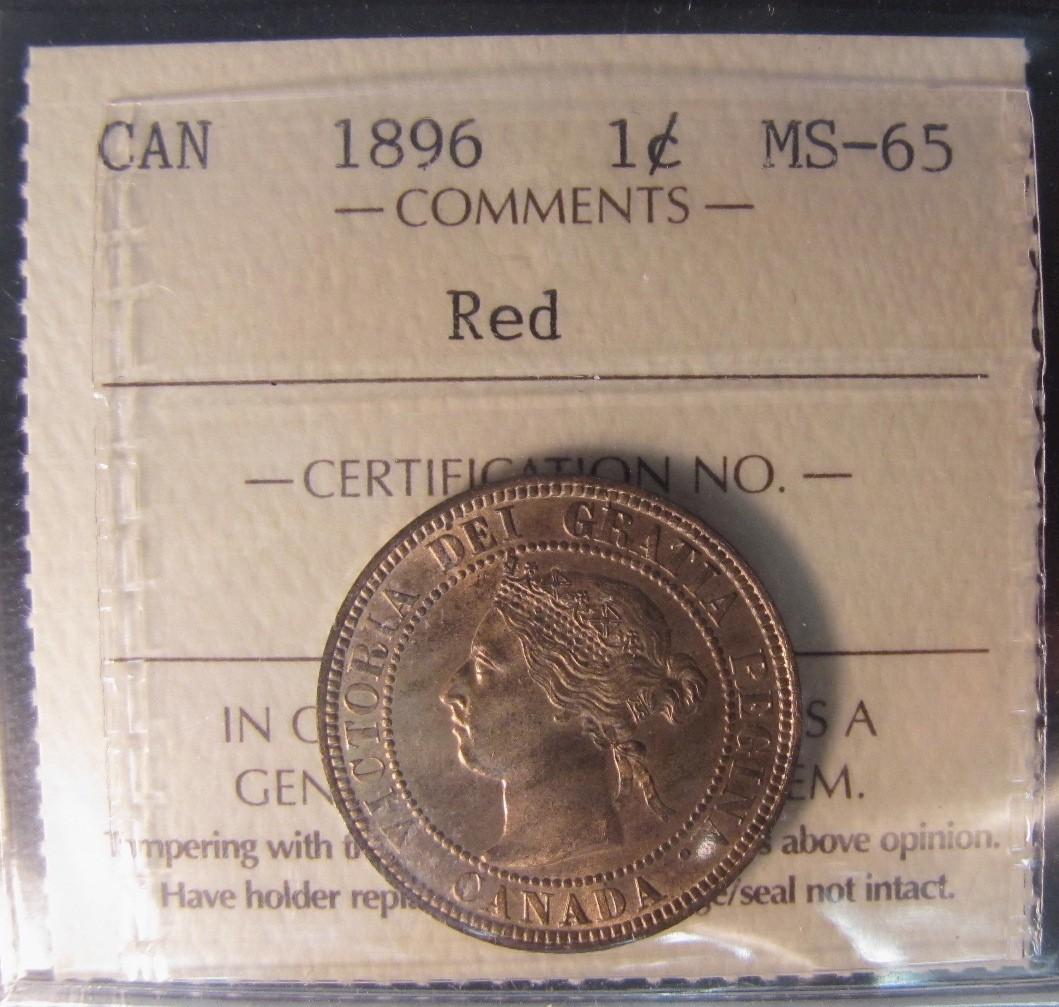 1896 1¢ ICCS MS65RD. Lustrous 85% red.