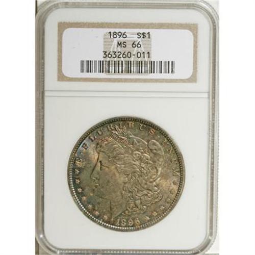 <B>1896 $1 MS66 NGC.</B></I> NGC Census: (526/43). PCGS Population (584/23). Mintage: 9,976,762. Numismedia Wsl. Price for NGC/PCGS coin in MS66: $460. (#7240)<BR><BR><B>Coin Engraver:</B> George T. Morgan<BR><BR><b>Shipping:</b> Coins & Currency (<a target="_blank" href="http://www.heritageauctions.com/common/shipping.php">view shipping information</a>)