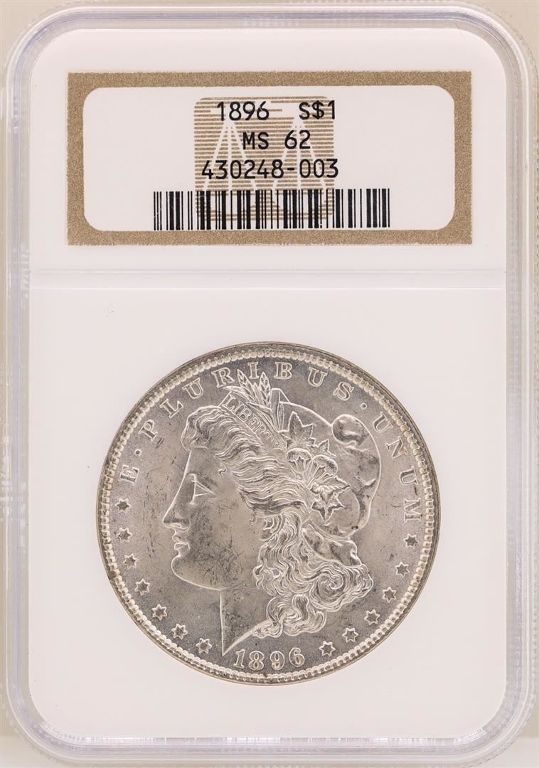 One 1896 $1 Morgan Silver Dollar Coin NGC MS62. NGC Certified.