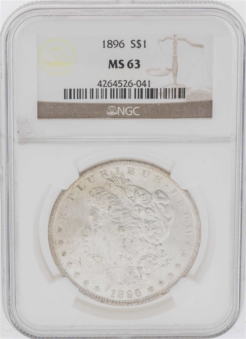 One 1896 $1 Morgan Silver Dollar Coin NGC MS63. NGC Certified.