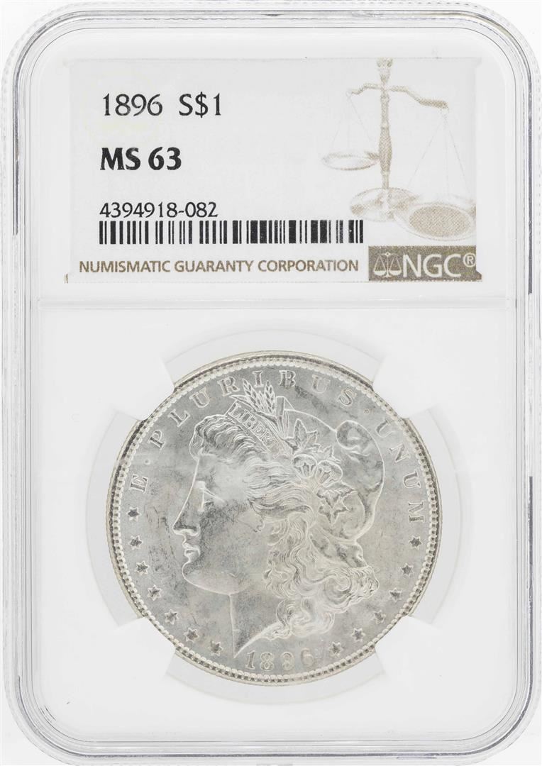 One 1896 $1 Morgan Silver Dollar Coin NGC MS63. NGC Certified.