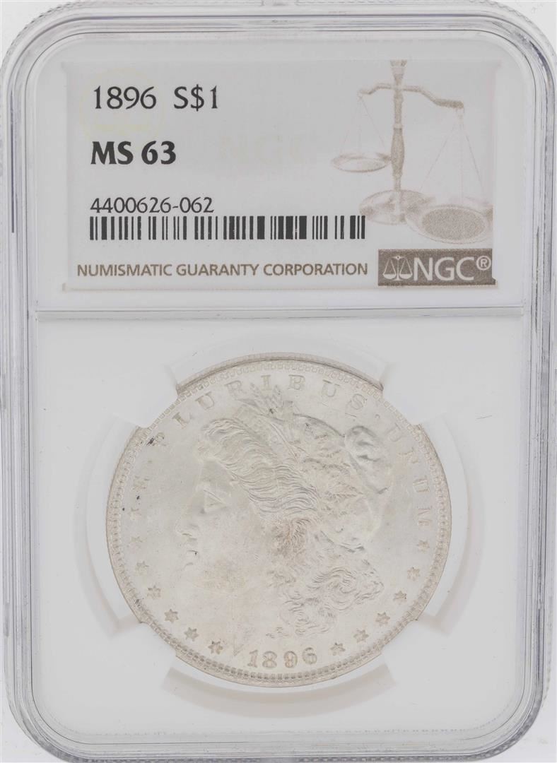 One 1896 $1 Morgan Silver Dollar Coin NGC MS63. NGC Certified.