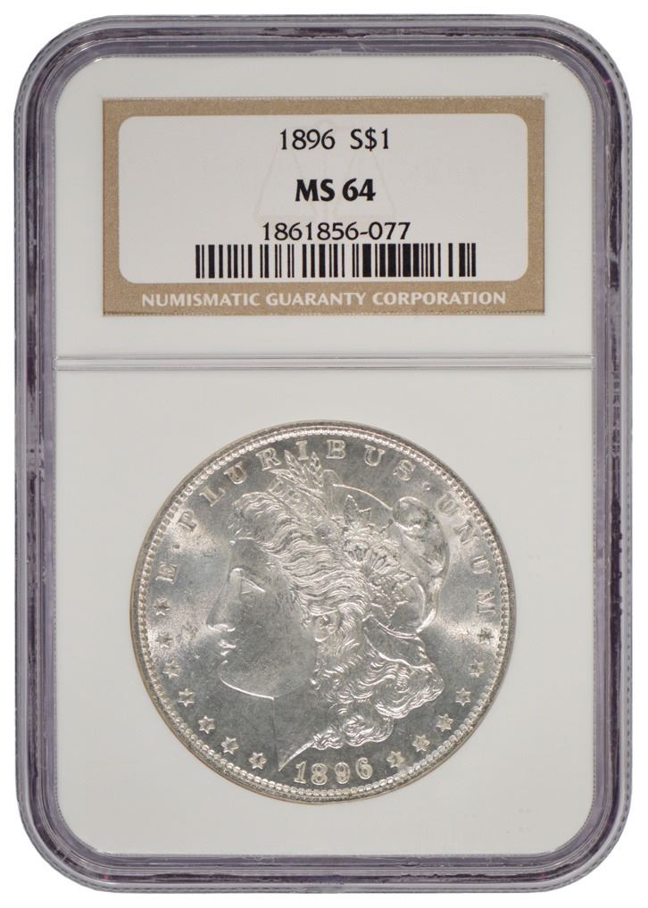 One 1896 $1 Morgan Silver Dollar Coin NGC MS64.