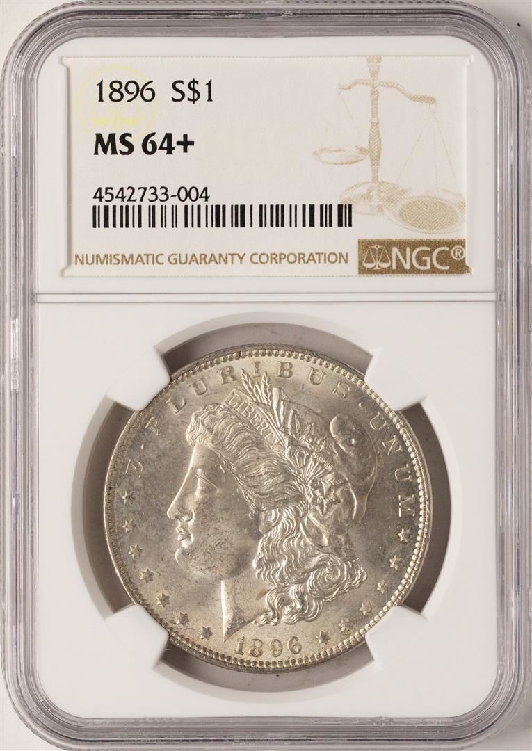 One 1896 $1 Morgan Silver Dollar Coin NGC MS64+. NGC Certified.