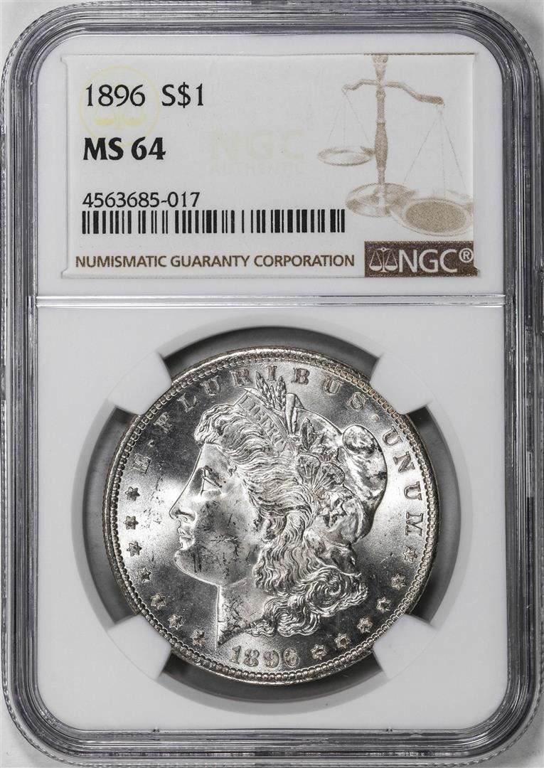 One 1896 $1 Morgan Silver Dollar Coin NGC MS64. NGC Certified.