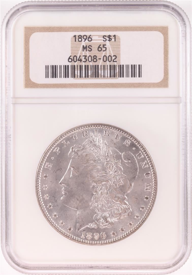 One 1896 $1 Morgan Silver Dollar Coin NGC MS65 Old Holder. NGC Certified.