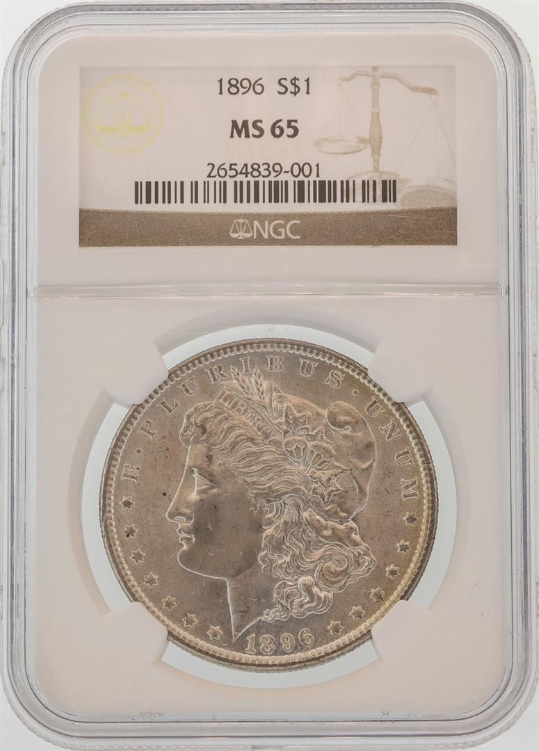 One 1896 $1 Morgan Silver Dollar Coin NGC MS65. NGC Certified.