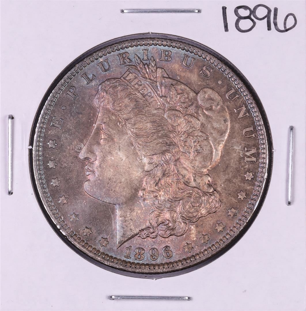 One 1896 $1 Morgan Silver Dollar Coin Nice Toning.