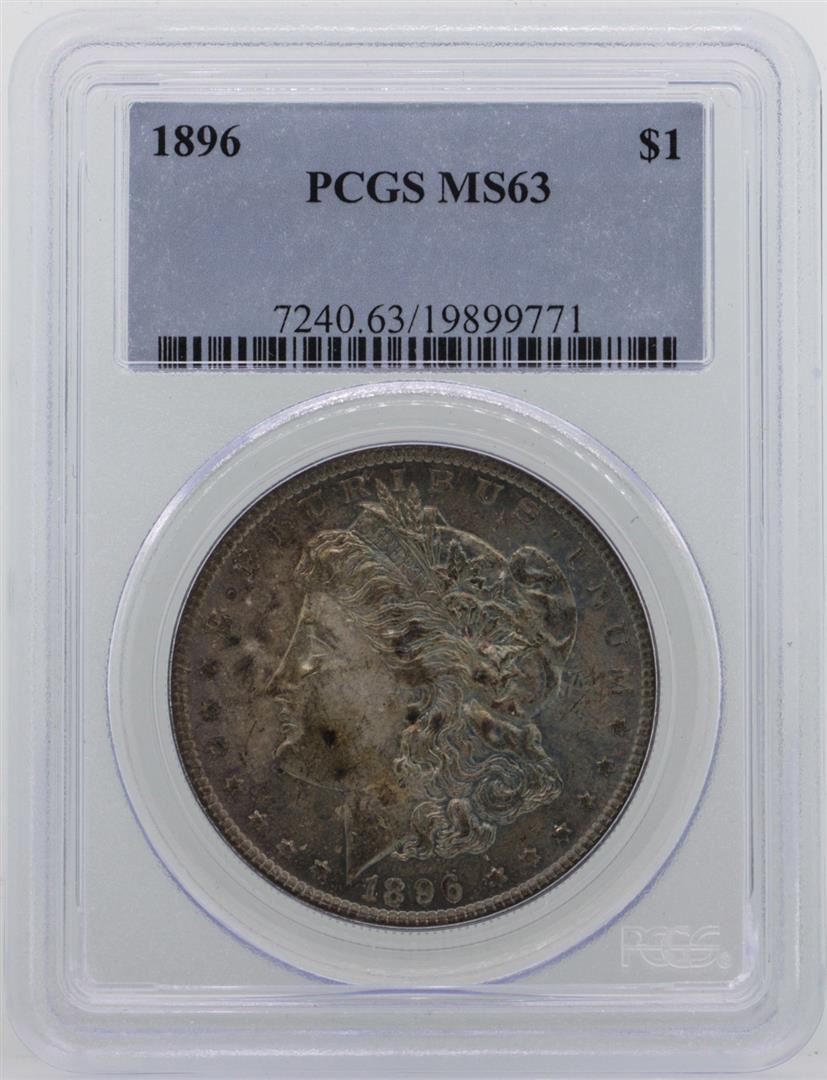 One 1896 $1 Morgan Silver Dollar Coin PCGS MS63 NICE TONING. PCGS Graded.