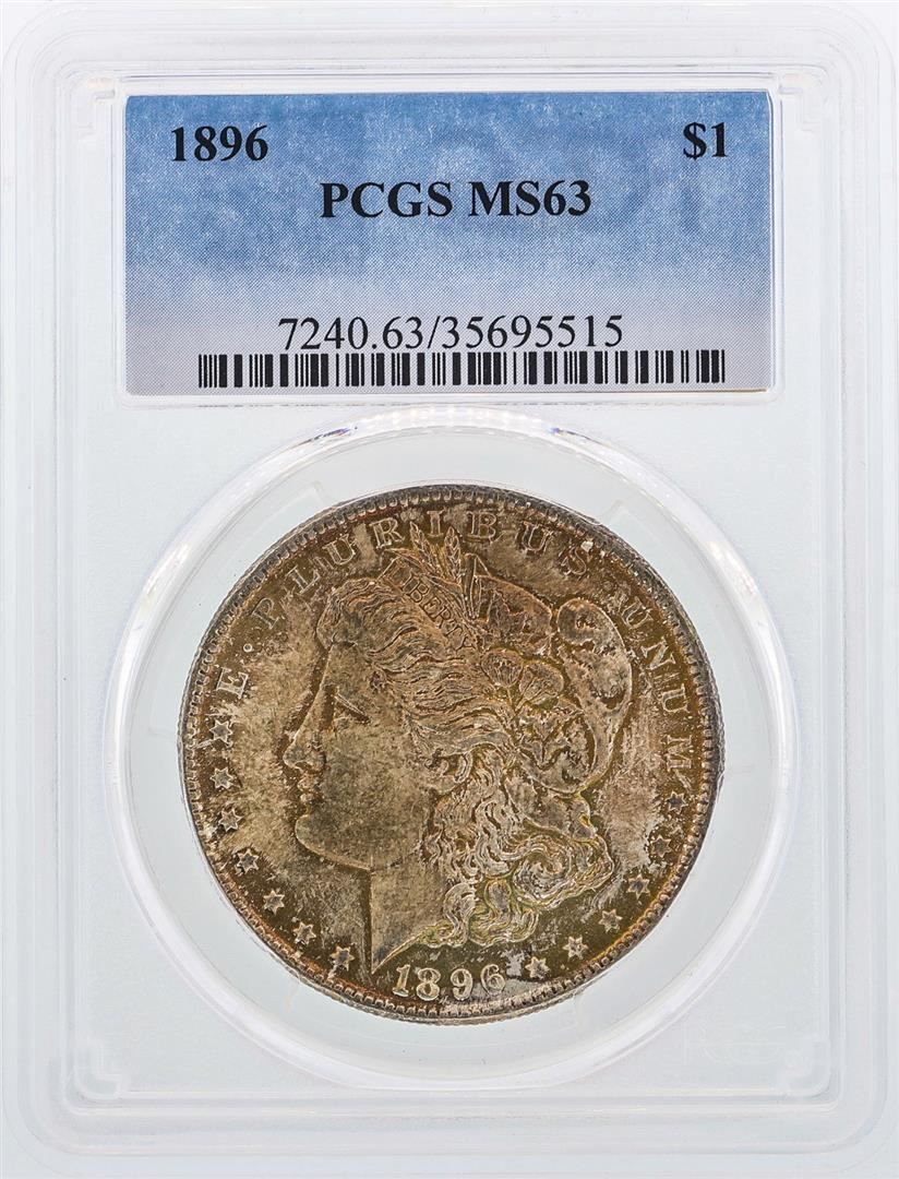 One 1896 $1 Morgan Silver Dollar Coin PCGS MS63 Nice Color. PCGS Graded.