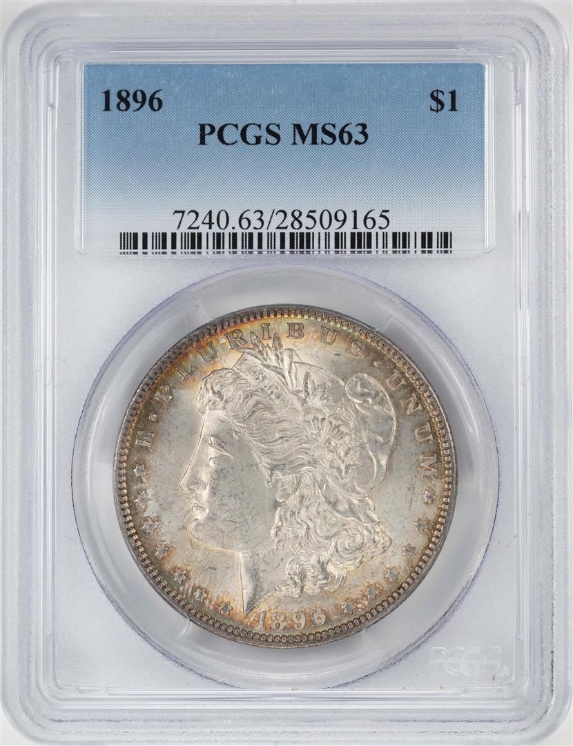 One 1896 $1 Morgan Silver Dollar Coin PCGS MS63 Nice Toning. PCGS Graded.