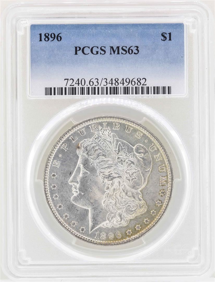 One 1896 $1 Morgan Silver Dollar Coin PCGS MS63. PCGS Graded.