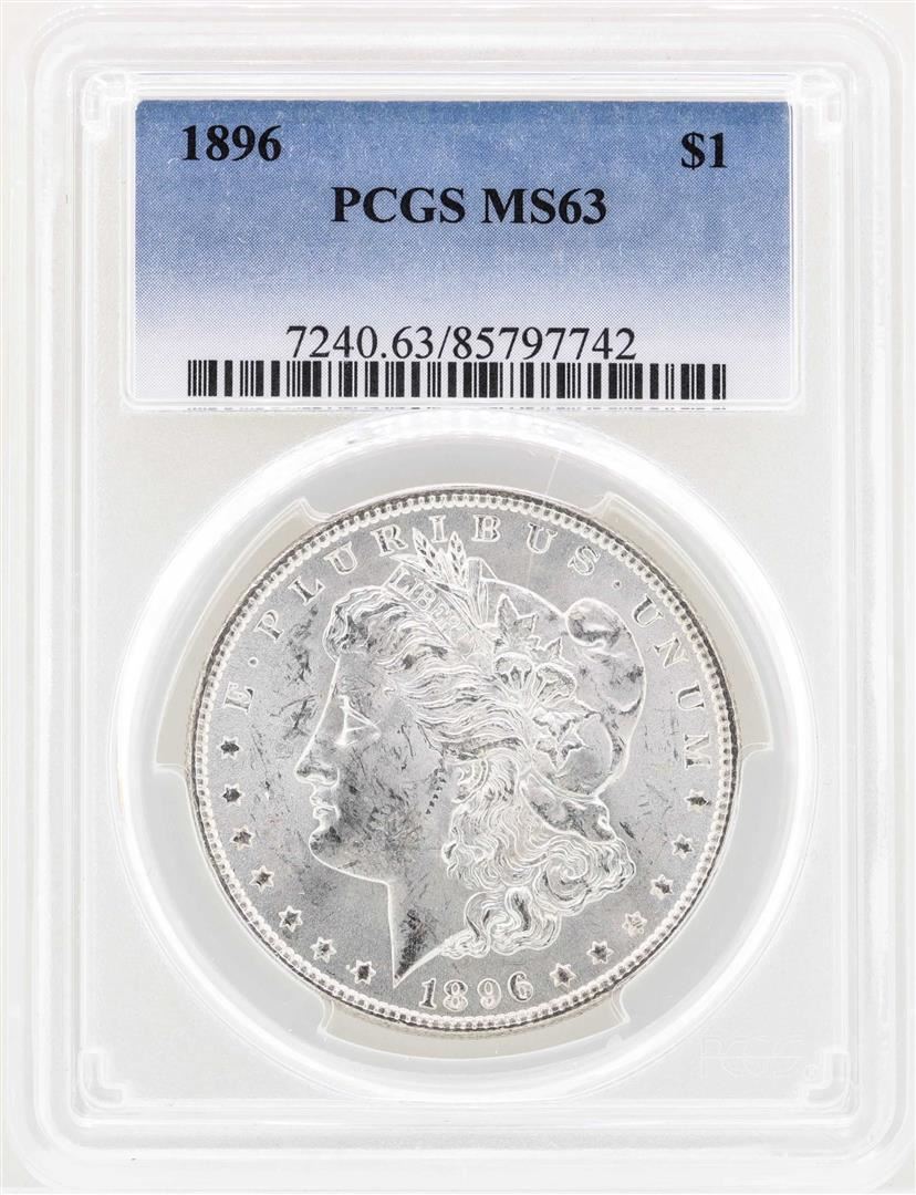 One 1896 $1 Morgan Silver Dollar Coin PCGS MS63. PCGS Graded.